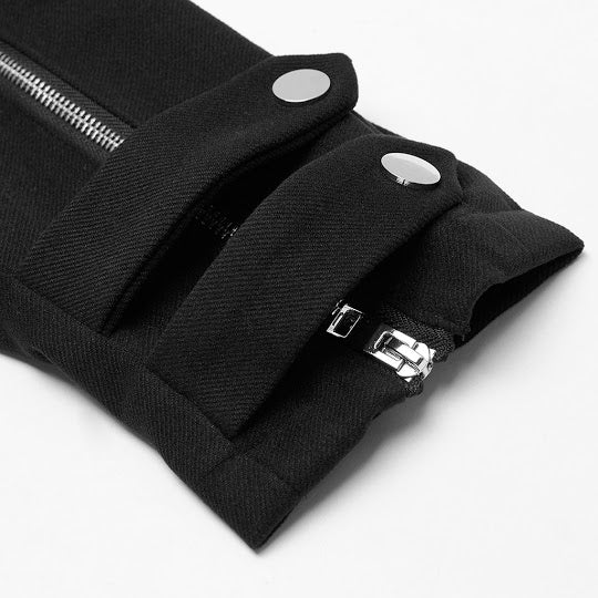 The flattering cut draws in your waistline and slims the legs, and stuns with a bottom cuff zipper and cool buttoned strap details.