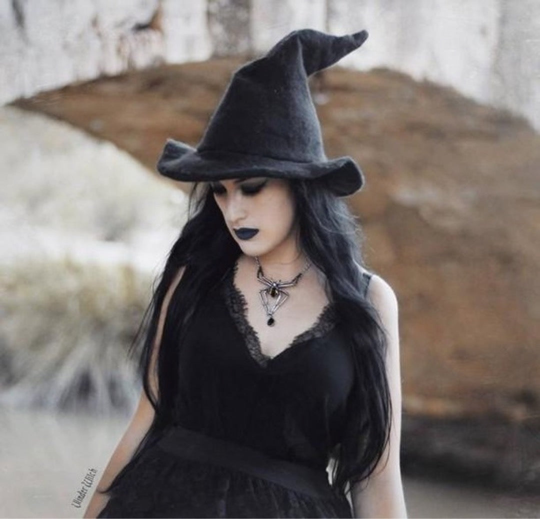 This beautiful, eye-catching necklace will inject gothic drama into any outfit - a giant pewter spider necklace set with green and black Swarovski crystals.