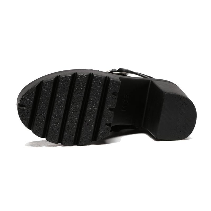 The coolest thick chunky platform heels, with a corrugated non-slip sole and two buckle straps which emerge from lace eyelet holes and then cross over on the back of the boot.