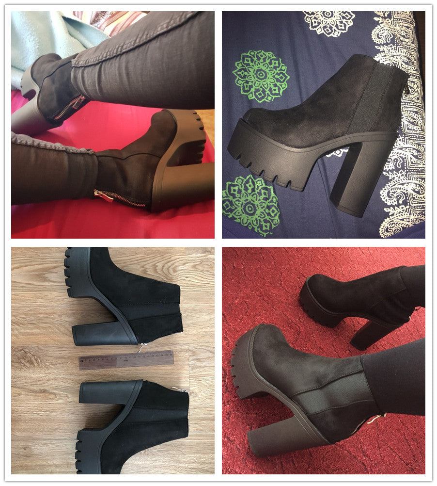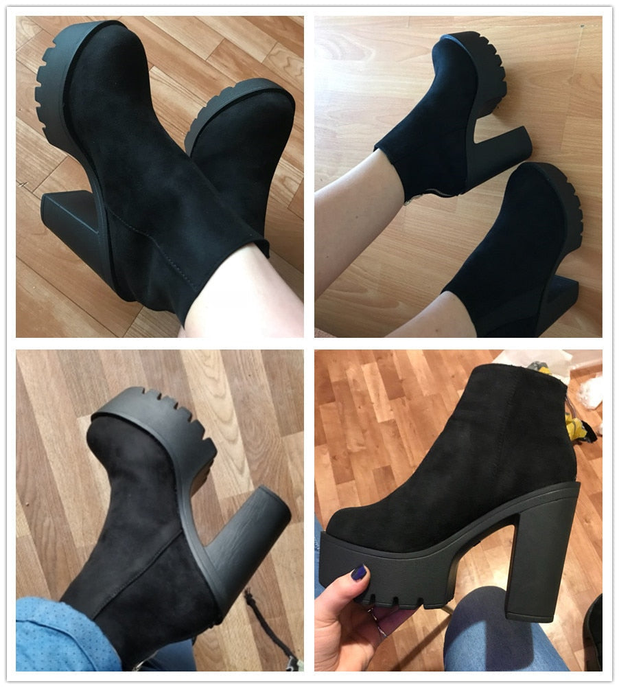 Cool and comfy faux suede platform ankle boots which blend in seamlessly with every outfit. Easy to pull on and pair with skinny jeans or a skirt and tights.