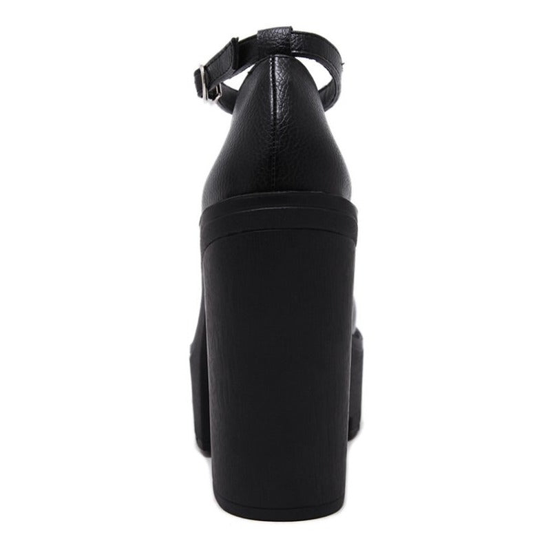 The cutest, very high platform heels with an ankle strap and chunky tyre platform sole. Comfy and sexy, they go with everything!