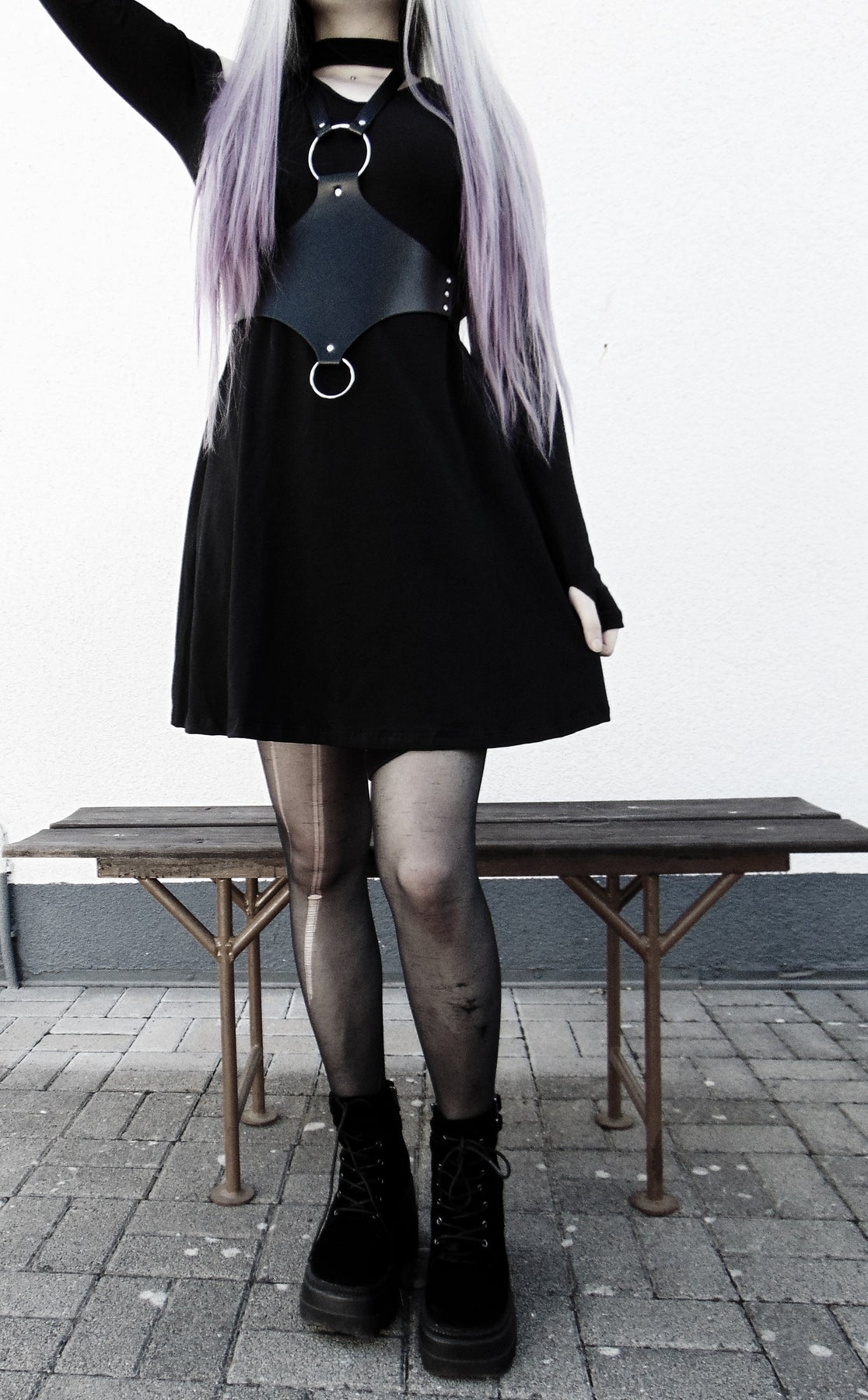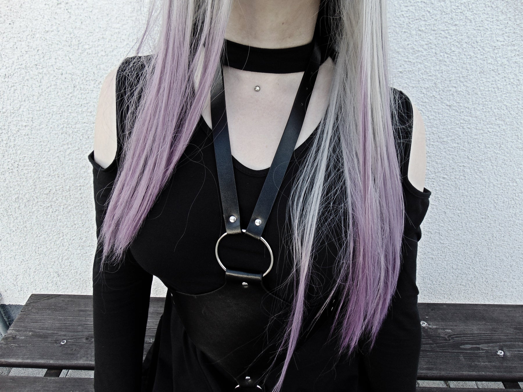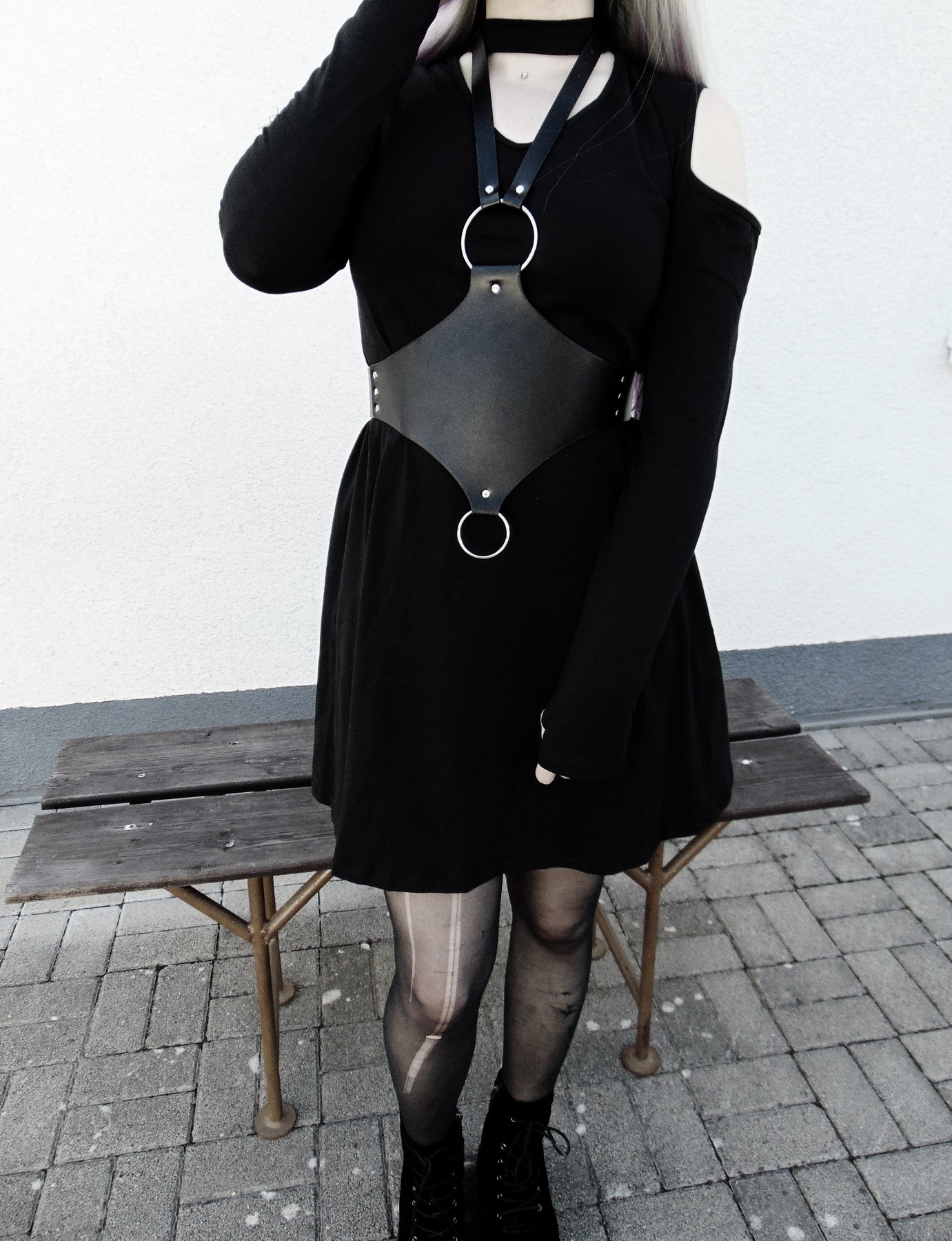 A gorgeous, sensual and Gothic faux leather belt with an adjustable buckle and two O-Ring attachments. This structured and modern neo-goth statement piece creates a stunning outfit when worn over any clothing.