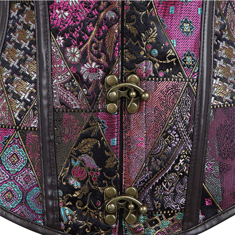 A push-up under bust shelf and corset laced back, plus a metal clasp buttoned front and double strapped choker neck provide a gorgeous and unique design.